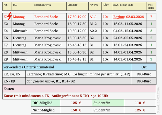 Liebe Teilnehmerinnen und Teilnehmer an den Sprachkursen der DIG, liebe Freundinnen und Freunde der italienischen Sprache,